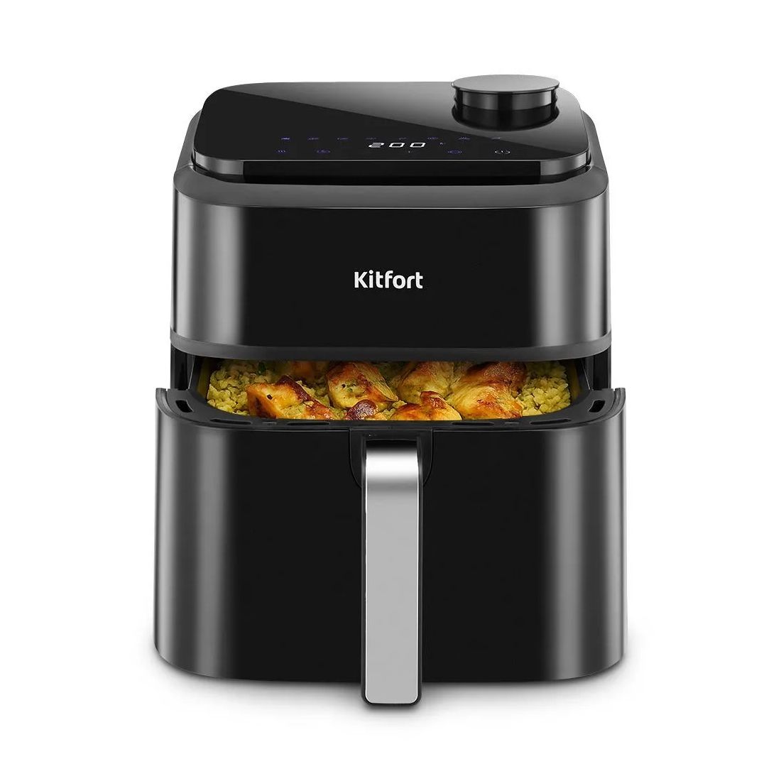 Здоровая еда с хрустящей корочкой Аэрогриль КТ-8154 позволяет готовить большинство продуктов без добавления масла. При этом они получаются сочными и с хрустящей корочкой. Достаточно лишь смазать продукт каплей масла с помощью силиконовой кисточки. Так вы приготовите более здоровую пищу. Практичность аэрогриля Прибор оснащён резервуаром для воды, откуда вода распрыскивается в поддон и превращается в пар. Благодаря такой технологии приготовления продукты становятся более нежными. Смотровое окно позволяет наблюдать за готовностью блюда, не открывая крышку. Функциональность и удобство Аэрогриль оснащён сенсорным управлением и 8 программами работы. Это позволяет использовать готовые шаблоны настроек, но параметры можно корректировать. Энергозависимая память сохраняет параметры на 30 минут в случае отключения питания. Легко мыть Продукты готовятся на специальной решётке, устанавливаемой в поддон. И на решётку, и на поддон нанесено антипригарное покрытие, поэтому ничего не пригорит! Поддон и решётку легко снять и помыть. Технология равномерного нагрева Вентилятор, который работает во время приготовления, создаёт циркуляцию горячего воздуха. За счёт этого продукты готовятся равномерно со всех сторон, а сам процесс приготовления не требует постоянного контроля. Безопасность превыше всего Для правильной работы устройства по бокам должно оставаться по 15 см свободного пространства, а сзади – 20 см. Так горячий воздух не повредит рядом стоящие предметы. Также нельзя устанавливать аэрогриль рядом с легковоспламеняющимися материалами. Характеристики: Мощность - 1800 Вт Количество программ приготовления - 8 Объем - 6,5 л Объем резервуара для воды - 0.1 л Температура - 80-200 °С с шагом 5 °С Таймер - 1 ч Управление - сенсорное Уровень шума - ≤60 дБ Длина шнура - 0,6 м Размер устройства - 279 х 377 х 330 мм