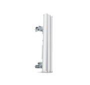 Антенна, Ubiquiti, AF-5G23-S45, airFiber X5 GHz, 23 dBi, Slant 45, параболическая, 2х2 MIMO, 5 ГГц >Основные характеристики Работает на частоте 5 ГГц в диапазоне от 5100 до 5900 МГц Усиление антенны 23 дБи Поддерживает технологию 2х2 MIMO Диаметр отражателя рассматриваемой модели составляет 378 мм, а сама тарелка имеет несколько углубленную форму — это сделано с целью уменьшения влияния боковых засветов на сигнал. Сам луч у AirFiber 5G23-S45 достаточно узкий и не превышает 10 градусов, что в сочетании с коэффициентом усиления в 23 дБи позволяет создавать беспроводные каналы передачи данных на расстояния до 200 км. С учетом длины волны частотного диапазона 5 ГГц, на котором и работает РРЛ, важно обеспечить наличие прямой видимости — только так можно добиться максимальной эффективности соединения. Так как антенна изначально конструировалась под определенную модель точки доступа, она имеет просто крепление, позволяющее быстро произвести монтаж РРД без использования специальных инструментов или средств. Пластиковый кожух выполняет роль защиты места соединения от влаги или механических воздействий, что позволяет использовать рассматриваемый радиомост практически в любом климате, в том числе и с повышенной влажностью. Для удобства при юстировке на корпусе AirFiber 5G23-S45 имеется уровень — ориентируясь на него можно легко выровнять антенну без каких-либо дополнительных средств. Весь корпус рассматриваемой модели покрыт антикоррозийным покрытием, что существенно увеличивает срок ее эксплуатации, особенно в климатических поясах с высокой влажностью.