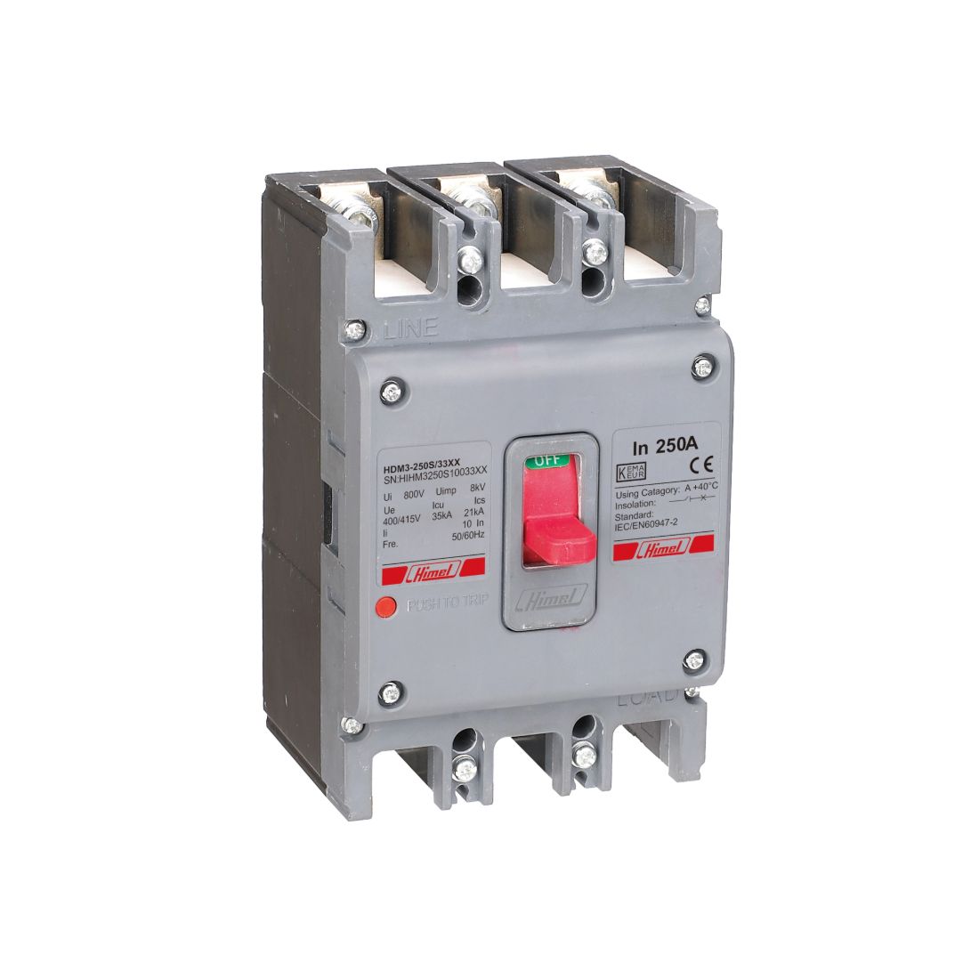 Автоматический выключатель Himel HDM3 250T/3P 200A Серия Himel HDM3 — это автоматические выключатели в литом корпусе (MCCB), предназначенные для эффективной защиты силовых цепей от перегрузок, коротких замыканий и аварийных режимов сети. Устройства оснащены тепломагнитными расцепителями, рассчитаны на эксплуатацию в сетях переменного тока 400/415 В и обеспечивают высокую надёжность в системах распределения электроэнергии. Основное применение автоматических выключателей Himel серии HDM3 — это защита и управление силовыми цепями в системах распределения электроэнергии на промышленных, коммерческих и инфраструктурных объектах. Основные характеристики Тип: автоматический выключатель в литом корпусе (MCCB) Серия: HDM3 Номинальный ток: 200 А Количество полюсов: 3P Тип сети: AC 400/415 В, 50/60 Гц Отключающая способность: 36 кА Тип расцепителя: Термо-магнитный Изоляционное напряжение [Ui]: 800 В Импульсное выдерживаемое напряжение [Uimp]: 8 кВ Электрическая/механическая износостойкость: 4000 / 10 000 циклов (без обслуживания) Установка: фронтальная, фиксированная Климатические условия эксплуатации: от –20 до +70 °C (хранение), до +40 °C (работа) Монтаж на высоте: до 2000 м Стандарты и сертификация: IEC 60947-2, CE, TÜV Степень защиты: IP20 Габариты (В×Ш×Г): 165 × 107 × 88 мм Масса: 1,53 кг