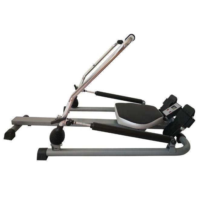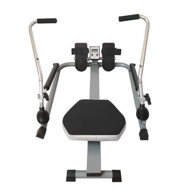 Гребной тренажер Гребля является очень эффективным комплексом упражнений, потому что в ходе его выполнения одновременно тренируются все основные группы мышц как верхней, так и нижней частей тела, а также сердечно-сосудистая система. Гребной тренажер предназначен для домашнего использования. Система нагружения состоит из 2 гидравлических цилиндров, нагрузка не регулируется. Диапазон вращения рукояток гребного тренажера составляет 360°Для удобства тренировки возможно изменить высоту крепления цилиндра к веслам (рычагам). Консоль с LCD-экраном компьютера отображает необходимую во время тренировки информацию. Преимущества - Изменяемая высота крепления цилиндра; - Круговое вращение рукояток. Характеристики Оптимально подходит как: гидравлические, недорогие; Система нагружения: гидравлическая; Дисплей: LCD; Показатели консоли: время, гребки, расстояние, скан, калории, общее количество гребков; Питание консоли: от батарейки; Макс. вес пользователя: 100 кг.; Размер тренажера: 111 см. х 78 см. х 66 см.; Размер упаковки: 115 см. х 32.5 см. х 14.5 см.; Вес нетто: 14 кг.; Вес брутто: 16 кг.
