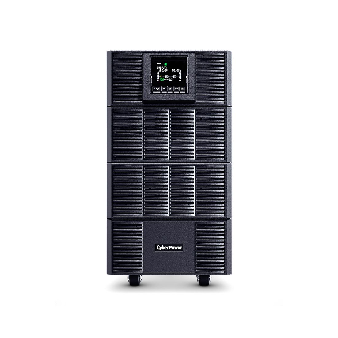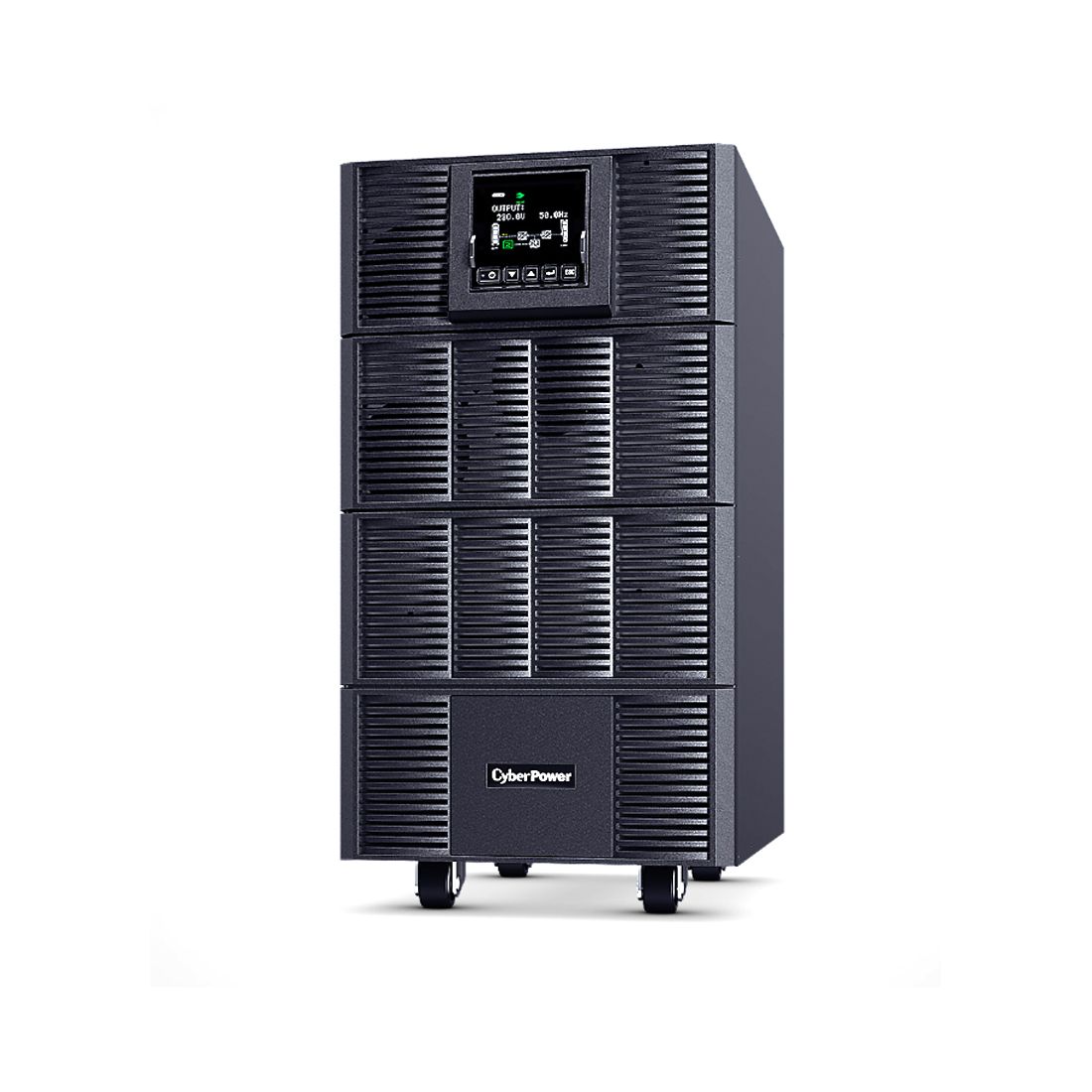 CyberPower OLS6KE — это высокоэффективный источник бесперебойного питания (ИБП) с топологией онлайн с двойным преобразованием, обеспечивающий непрерывное электропитание с чистой синусоидой для критически важных устройств, таких как NAS и серверы, видеорегистраторы и системы видеонаблюдения, объекты транспорта и инфраструктуры, а также аварийные системы. Обычно используется в помещениях бэк-офиса, серверных и дата-центрах. Выходной коэффициент мощности ИБП составляет 1, что позволяет подключать большее количество критичных нагрузок по сравнению с обычными ИБП. Удобная наклоняемая цветная LCD-панель позволяет пользователю легко отслеживать состояние питания и настраивать параметры устройства. ИБП автоматически определяет количество подключенных дополнительных аккумуляторных модулей (EBM) для оценки времени автономной работы. Ток заряда батарей регулируется через настройки на экране, что позволяет сократить время зарядки. Также устройство оснащено сухими контактами релейного типа для уведомления о событиях ИБП, обеспечивая удобное управление. Кроме того, данная модель укомплектована удалённой облачной картой (Remote Cloud Card), что позволяет осуществлять мониторинг работы ИБП через веб-портал или мобильное приложение.