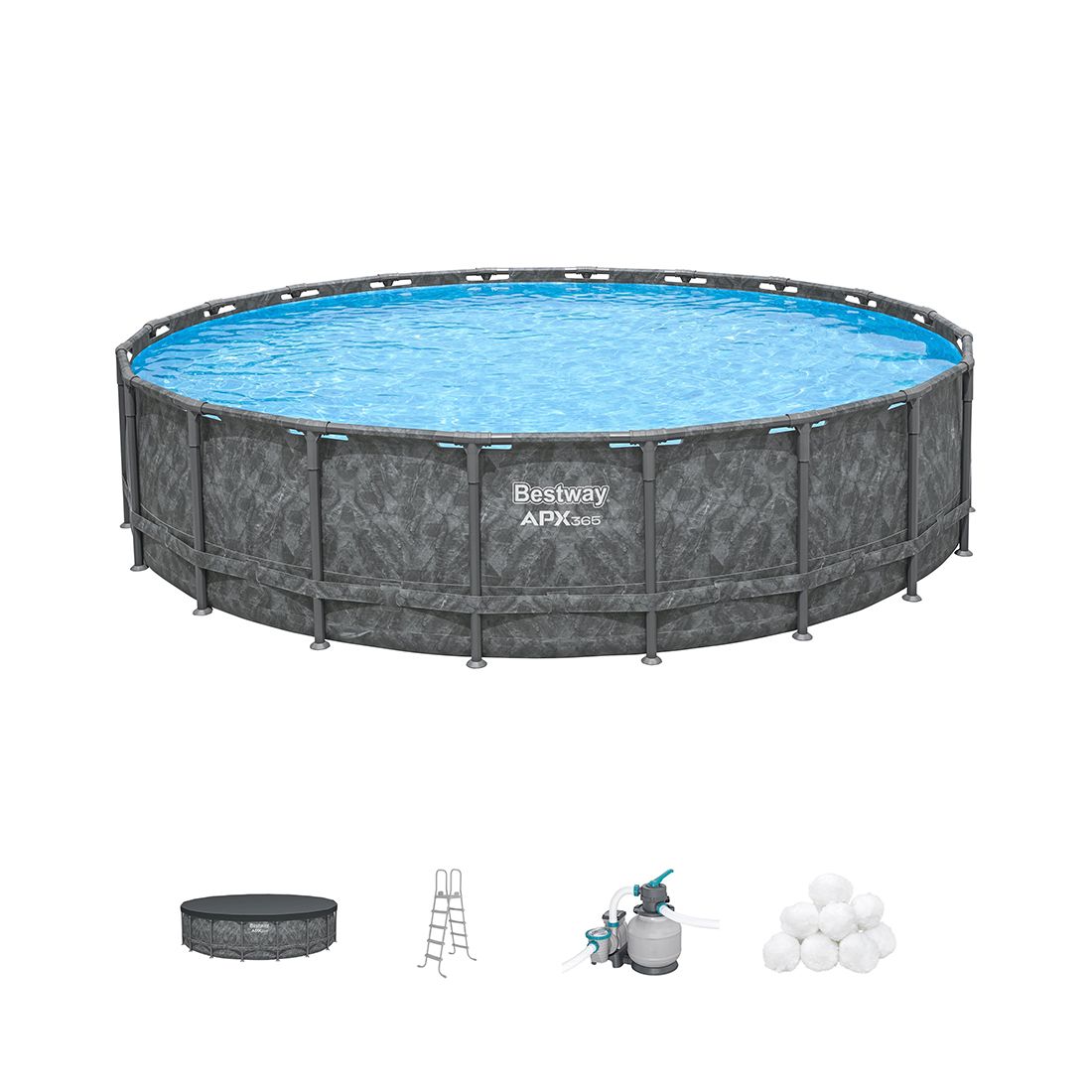 Каркасный бассейн APX 365, 671 х 132 см, BESTWAY, 561JZ, Винил, 40377 л., Стальной каркас, Ф-насос 58499 (8327л/ч) c полисферами, Тент, Лестница 58332, Темно-серый, Цветная коробка Превратите свой задний двор в оазис для купания с помощью инновационного круглогодичного наземного бассейна Bestway® APX 365™. Бассейны APX 365, созданные ветеранами отрасли и экспертами в области долговечности, изготовлены из сочетания долговечных материалов и новаторских технологий защиты от атмосферных воздействий, поэтому он будет приносить радость всей вашей семьей долгие годы! Стоит собранным круглый год: бассейны APX 365, первые в своем роде на рынке наземных бассейнов, оснащены технологией защиты от атмосферных воздействий Polar-Shield™. Вы можете установить его для семейного отдыха летом, а затем оставить на зиму — хранение в межсезонье не требуется! Polar-Shield защищает лайнер от атмосферных воздействий даже при низких температурах. Прочная конструкция: бассейн изготовлен из коррозионностойкой оцинкованной стали и рассчитан на длительный срок службы. Рама изготовлена из 100% стали, которая покрыта слоем цинка, чтобы предотвратить коррозию и повреждения от воздействия погодных условий. Соединители ClickConnect упрощают установку бассейна, не требуя дополнительных инструментов или принадлежностей. Соединители рамы также предотвращают контакт металла с металлом, обеспечивая устойчивость к образованию ржавчины. Прочный лайнер бассейна изготовлен из износостойкого материала Tritech® — сверхпрочного 3-слойного армированного материала для повышения прочности и проколостойкости. Tritech на 15% более устойчив к разрыву, на 33% более устойчив к растяжению и на 83% более устойчив к проколам, чем стандартный ПВХ, что гарантирует, что ваш бассейн будет служить вам лето за летом. Дополнительные особенности: в комплект этого бассейна входят насос с песочным фильтром, фильтрующие шарики для бассейна Polysphere™, лестница из оцинкованной стали и покрышка для бассейна. Фильтрующие шарики Polysphere — это легкая, моющаяся и многоразовая замена песка, необходимого для работы фильтрующего насоса. Bestway APX 365 — это вершина бассейнов, демонстрирующая максимальную производительность из года в год! Материал чаши: высококачественный трехслойный винил 0.56 мм (дно 0.56 мм); Материал каркаса: усиленные оцинкованные стальные U-трубы с порошковой окраской (снаружи и внутри); Диаметр: 671 см Высота: 132 см Объём бассейна: 40377 л. Тип подключения аксессуаров: отверстия; Время монтажа: 50-60 минут + наполнение водой. Комплектация Фильтрующий песочный насос 58499 (8327 л/ч) c наполнителем; Лестница для бассейна 58332 (132 см); Тент для бассейна; Клапан для слива воды - есть; Ремкомплект.