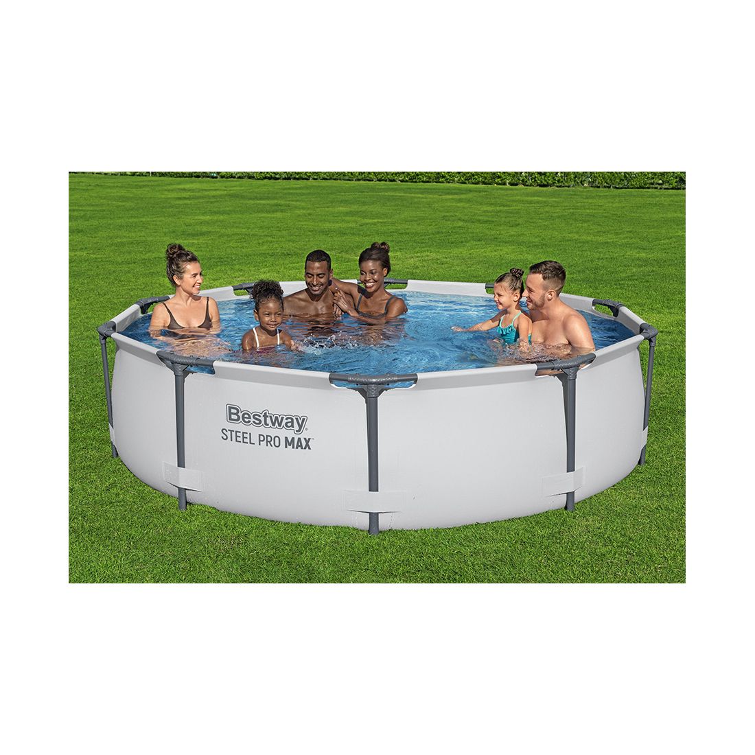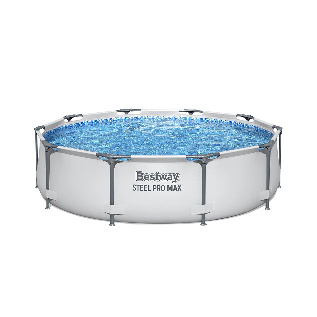 Каркасный бассейн Steel Pro MAX 305 х 76 см, BESTWAY, 56406, Винил, 4678 л., Стальной каркас, Серый, Цветная коробка Каркасный бассейн Bestway отличается высокой прочностью и устойчивостью. Чаша выполнена из высококачественного трехслойного ПВХ: два слоя плотного винила и один - стекловолокно для особой прочности. Каркас металлический нержавеющий оцинкованный.Не требует бетонирования и подготовки ямы, все, что нужно, это плоская, горизонтальная площадка. Сезонный бассейн (рекомендуется разбирать на холодное время года) обладает простой конструкцией - может быть легко разобран и собран заново. Время сборки и подключения бассейна не более 30-40 минут.Удобный сливной клапан позволяет присоединить садовый шланг, что дает возможность слить воду в любое место. Материал чаши: высококачественный трехслойный винил 0,42 мм (дно 0,32мм); Материал каркаса: оцинкованные стальные трубы с порошковой окраской (снаружи и внутри); Диаметр: 305 см Высота: 76 см Объём бассейна: 4678 л. Тип подключения аксессуаров: на хомутах; Время монтажа: 30-40 минут + наполнение водой. Комплектация Клапан для слива воды; Ремкомплект.
