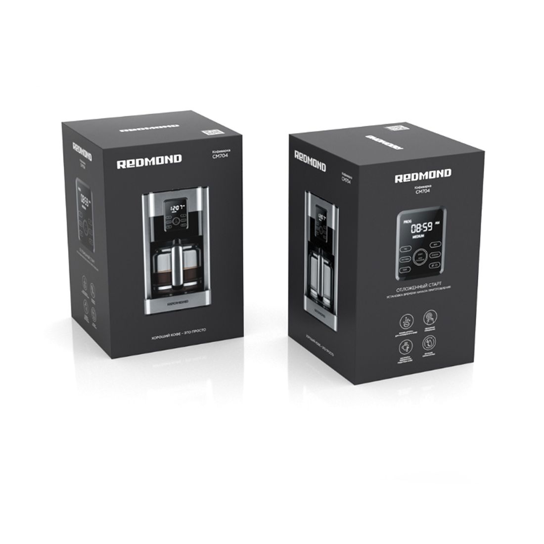 Капельная кофеварка REDMOND CM704 Cтильный и компактный прибор мощностью 1000 Вт, который будет радовать вас превосходным американо. Функции таймера и подогрева освободят ваше утро от суеты, а уникальный запатентованный дизайн и большой дисплей позволят кофеварке дополнить интерьер современной кухни. Таймер — приготовление точно ко времени Отложите начало приготовления напитка на утро, чтобы не тратить на это время, собираясь на работу. Кофе будет готов точно к завтраку благодаря таймеру отсрочки старта — так у вас будет достаточно времени насладиться напитком. Режим «Арома» Для тех, кто предпочитает кофе покрепче, есть особая функция. В режиме «Арома» вода подается в фильтр с молотыми зернами медленнее обычного, поэтому вы получите крепкий, насыщенный напиток с выраженным вкусом. Сенсорное управление Вы можете выбрать желаемый напиток и запустить программу парой прикосновений. Всего доступно 4 программы. Управление интуитивно понятно, его не придется долго осваивать. Большой дисплей виден издалека, а все надписи и значки – простые и ясные. Настройка температуры подогрева кофе 70, 75 или 80 °С Подставка с подогревом автоматически поддерживает температуру готового кофе, что позволит вам отвлечься на звонок или срочное дело, не боясь, что напиток остынет. Небольшой совет для ценителей: налейте кофе в подогретые чашки, чтобы раскрыть весь его аромат и вкус. Режим самоочистки Не нужно часто разбирать кофеварку и мыть все трубки вручную. Она справится с этим благодаря функции самоочистки, которая за пару минут удалит остатки кофе. Это особенно полезно, если вы хотите попробовать новый сорт зерен, так вкус напитка получится чистым, без примесей. Вместительный кувшин Каленое термостойкое эко-стекло, из которого выполнен кувшин для кофе, выдерживает нагрев до 150 градусов и прослужит вам не один год. Его объема 1,8 литра хватит на приготовление кофе для всей семьи. Кофеварка при этом сохраняет компактные габариты 200 х 340 х 200, поэтому не займет много места. Хороший кофе – это просто! Характеристики: Тип кофеварки капельная Тип используемого кофе молотый Тип нагревателя бойлер Тип управления сенсорный Цвет черный Мощность 1000 Вт Напряжение 220-240 В, 50 Гц Материал корпуса пластик металл Материал кувшина термостойкое стекло металл пластик Материал колбы для кофе термостойкое стекло Объем кувшина 1,8 л Объем резервуара для воды 1,8 л Количество одновременно приготовляемых чашек 12 Регулировка крепости напитка есть Температурные режимы 70, 75, 80°C Защита от поражения электрическим током класс I Защита от перегрева есть Таймер да Время непрерывной работы до 4 часов Отсрочка старта есть Автоматическая регулировка времени работы есть Фильтр съемный Возможность использования бумажных фильтров есть Функция «Анти-капля» есть Функция автоотключения есть Индикация работы светодиодная Дисплей светодиодный Индикатор уровня воды да Автоподогрев есть Подогрев колбы есть Длина шнура электропитания 0,8 м Габаритные размеры 200 × ...