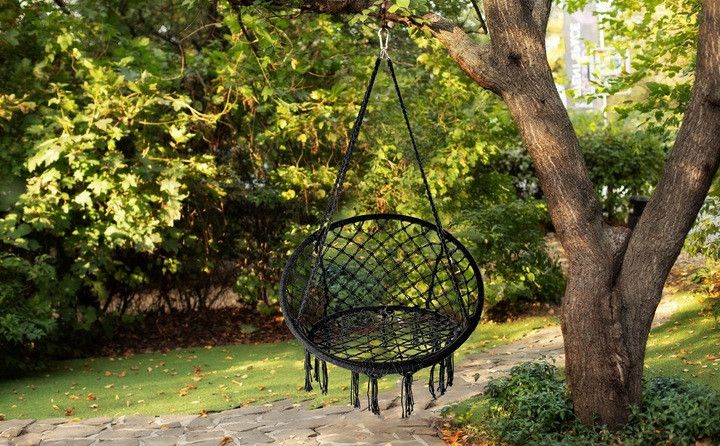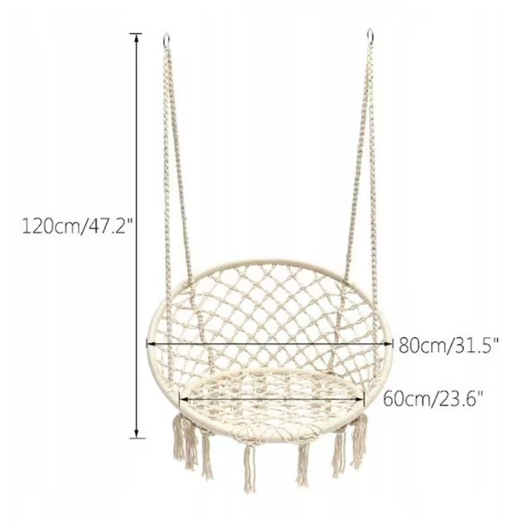 Откройте для себя самые большие преимущества подвесного кресла: прекрасно будет смотреться в саду, комнате и на балконе; возможность висеть как качели, что позволяет двигаться вперед и назад; можно повесить как кресло Pivot, которое вращается на 360°; самый модный дизайн из интересных переплетений; качественные хлопковые веревки; отлично подойдет для гостиной и для детской; прочная и удобная конструкция; устойчив к неблагоприятным погодным условиям; оптимальные размеры, обеспечивающие комфорт для взрослых и детей Спецификации продукта: Материал: хлопковая веревка Конструкция: металлический обод Грузоподъемность: 120 кг Размеры: 120 х 60 х 80 см Высота спинки: около 44 см. Длина шнуров с ручками: 100 см . Крепление: одноточечное и двухточечное Прочная конструкция Подвесное кресло "Гнездо аиста" изготовлено из высококачественных материалов. Сиденье изготовлено из металлического обода, обмотанного хлопковой веревкой. Благодаря такой защите подвесное кресло не будет повреждено и деформировано. Два способа крепления Ручки подвесного кресла Heckermann позволяют прикрепить его двумя способами. Как вы хотите использовать качели-гнездо, зависит только от вас! Стиль качания позволяет стулу раскачиваться вперед и назад. Для крепления таким образом закрепите два крючка/анкера в потолке или повесьте качели на раму. Стиль Pivot позволяет качелю гнезда вращаться на 360°. В этом случае для подвешивания достаточно одного анкера. Быстрый монтаж Чтобы максимально упростить и облегчить сборку подвесного кресла, шнуры, на которых держится сиденье, отделаны специальными металлическими ручками.