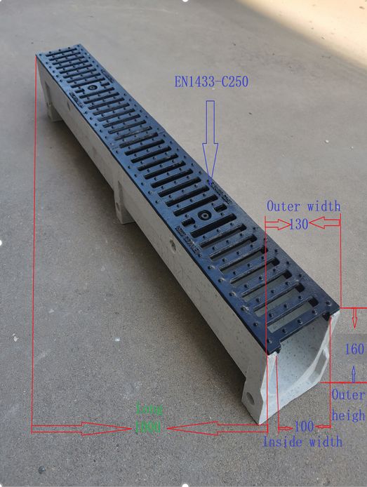 Полимербетонные водоотводные лотки предназначены для обустройства системы поверхностного водоотвода на территориях с неинтенсивным дорожным движением. Класс нагрузки лотков – А15-С250 (1,5т/м2 - 25т/м2). Материал – полимербетон (Бетон где связующим является полиэфирная смола, без участия цемента и воды). Основная задача – сбор и отвод в общую канализацию или ближайший водоем ливневых и талых вод. Область применения: Пешеходные зоны, тротуары, скверы, парки, велосипедные дорожки, индивидуальная застройка, частные гаражи для легковых автомобилей, обочины автодорог, стоянки автомобилей, гаражи. Особенности: ЭКОЛОГИЧЕСКИЙ И ХИМИЧЕСКИ СТОЙКИЙ МАТЕРИАЛ. Плюсы: -ЛЕГЧЕ чем аналоги бетонных лотков в сборе с чугунными решетками, что облегчает монтаж и удешевляет транспортировку; -прочность при сжатии и изгибе ВЫШЕ в 2—3 раза чем у бетона; -удельная ударная вязкость ВЫШЕ в 5—10 раз, чем у бетона; -ВОДОПОГЛОЩЕНИЕ не превышает 0,2%; -высокая МОРОЗОСТОЙКОСТЬ (более 300—500 циклов); -высокая ХИМИЧЕСКАЯ СТОЙКОСТЬ к действию кислот, растворов солей и нефтепродуктов; -коэффициент ТЕМПЕРАТУРНОГО расширения 0,5—1,0∙10-3 1/град, т. е. в 5—10 раз выше, чем у стали и цементного камня и составляет от -50 до +150°С; -устойчивость к УЛЬТРАФИОЛЕТОВМУ излучению. Технические характеристики: Длина, мм 1000 Ширина, мм 100 Высота, мм 160 Тип товара Лоток Материал Полимербетон Гидравлическое сечение DN100 Класс нагрузки A15, B125, C250 Комплект Чугунная решетка в комплекте с креплением