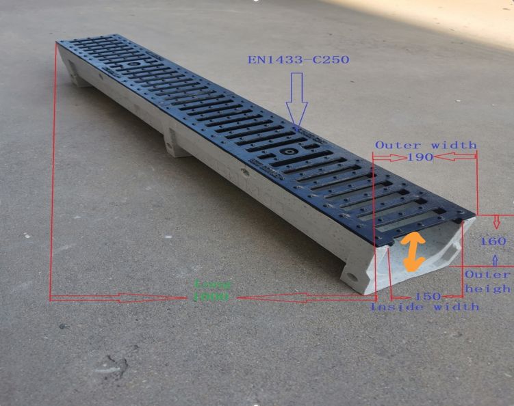 Полимербетонные водоотводные лотки предназначены для обустройства системы поверхностного водоотвода на территориях с неинтенсивным дорожным движением. Класс нагрузки лотков – А15-С250 (1,5т/м2 - 25т/м2). Материал – полимербетон (Бетон где связующим является полиэфирная смола, без участия цемента и воды). Основная задача – сбор и отвод в общую канализацию или ближайший водоем ливневых и талых вод. Область применения: Пешеходные зоны, тротуары, скверы, парки, велосипедные дорожки, индивидуальная застройка, частные гаражи для легковых автомобилей, обочины автодорог, стоянки автомобилей, гаражи. Особенности: ЭКОЛОГИЧЕСКИЙ И ХИМИЧЕСКИ СТОЙКИЙ МАТЕРИАЛ. Плюсы: -ЛЕГЧЕ чем аналоги бетонных лотков в сборе с чугунными решетками, что облегчает монтаж и удешевляет транспортировку; -прочность при сжатии и изгибе ВЫШЕ в 2—3 раза чем у бетона; -удельная ударная вязкость ВЫШЕ в 5—10 раз, чем у бетона; -ВОДОПОГЛОЩЕНИЕ не превышает 0,2%; -высокая МОРОЗОСТОЙКОСТЬ (более 300—500 циклов); -высокая ХИМИЧЕСКАЯ СТОЙКОСТЬ к действию кислот, растворов солей и нефтепродуктов; -коэффициент ТЕМПЕРАТУРНОГО расширения 0,5—1,0∙10-3 1/град, т. е. в 5—10 раз выше, чем у стали и цементного камня и составляет от -50 до +150°С; -устойчивость к УЛЬТРАФИОЛЕТОВМУ излучению. Технические характеристики: Длина, мм 1000 Ширина, мм 190 Высота, мм 160 Тип товара Лоток Материал Полимербетон Гидравлическое сечение DN100 Класс нагрузки A15, B125, C250 Комплект Чугунная решетка в комплекте с креплением