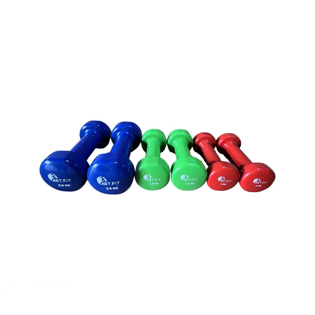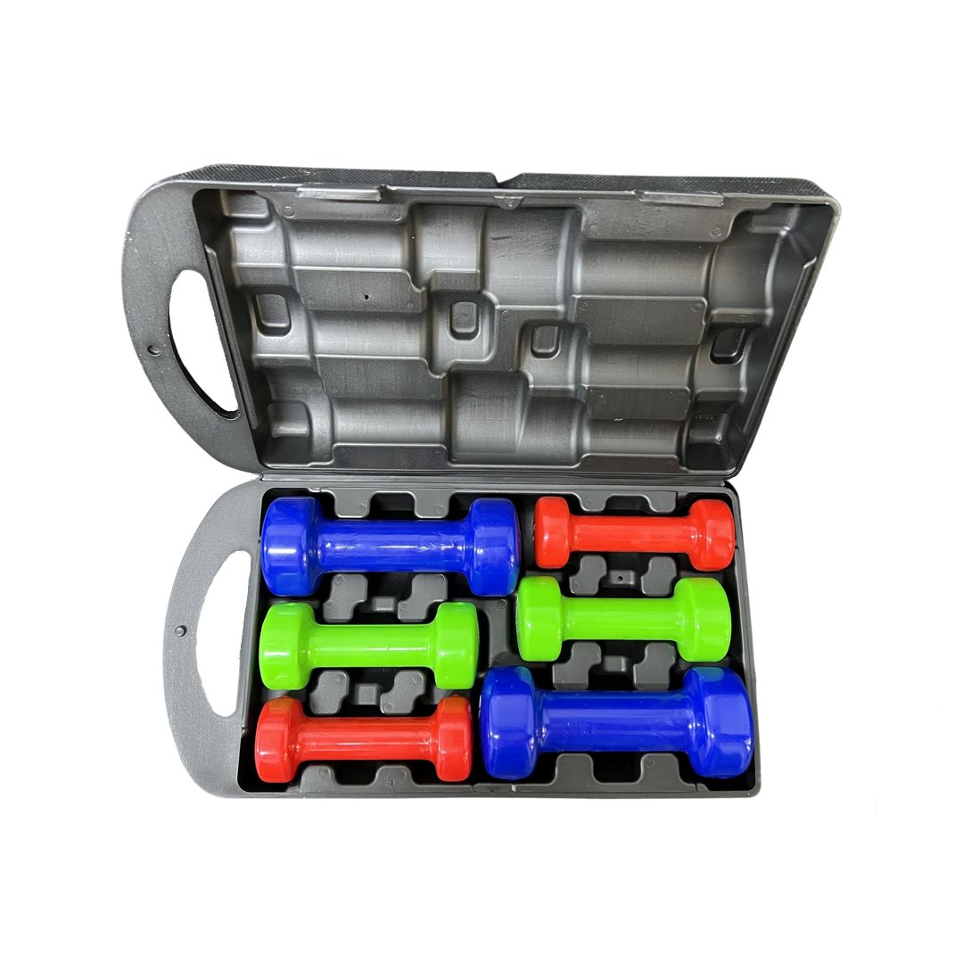 Виниловые гантели. Фитнес гантели. К комплекте: Гантели по 1 кг, 1.5кг, 2.5кг Пластиковый чемодан Гантели широко используются в качестве утяжелителей в различных видах спорта. Их применяют при занятии фитнесом, аэробикой, бегом, при отработке ударов в единоборствах и других видах спорта. Гантели обрезиненные не выскальзывают из рук, не царапают пол и инвентарь, не заменимы при занятиях в домашних условиях. Благодаря своей уникальной, шестиугольной форме гантели не катаются по полу и не гремят.