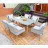 Размеры: Стол 1500х900х750см Кресло 600х600х850см Материал изготовления Металл, Искусственный ротанг Кресло 6 (шт.) Раньше плетеная мебель из ротанга чаще всего встречалась на дачах и открытых террасах. Сегодня комплекты мебели из искусственного ротанга присутствуют в особняках и квартирах, в ресторанах и кафе, на верандах, балконах и в загородных домах. Причем такая мебель нисколько не ухудшает интерьер помещения, а напротив, делает его стильным, современным и оригинальным. Пользуются все большей популярностью не только плетеные кресла-качалки и стулья, но и наборы мебели из искусственного ротанга для гостиной, спальни и кабинета. Такие предметы мебели придают помещению не только уют, но и поднимают настроение находящихся в нем людей. Преимущества мебели из искусственного ротанга В далекой древности мебель изготавливали из натуральных материалов. Однако сегодня все большей популярностью пользуются изделия из синтетических, специально изготовленных волокон. Многие считают, что дело здесь в дешевизне искусственных материалов, но это не совсем верно. Самое главное, что у синтетических волокон более широкие возможности для их использования: мебель из таких волокон является экологически чистой, нетоксичной и абсолютно безопасной для здоровья человека; при ее изготовлении не используются живые растения, покупая такую мебель, вы тем самым заботитесь об охране окружающей среды; искусственные волокна обладают высокой износостойкостью и практичностью, хорошо выдерживая перепады температур и повышенную влажность воздуха; изделия из искусственного ротанга очень легкие, передвинуть их с места на место не составит труда никому; мебель красива и эстетична, легко может дополнить любой интерьер. Отдыхая на плетеной мебели из синтетического ротанга, вы не только можете полюбоваться красивым ажурным плетением, но и никогда не ощутите жару и духоту, так как изготовленная из натурального волокна мебель очень хорошо продувается и вентилируется.