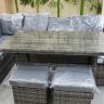 Размеры Размеры стола: 139х79см, высота 72см Размер дивана 1: 165х65см, высота 75см Размер дивана 2: 182х65х, высота 75см Размер пуфика: 40х40х36см Размер упаковки: 1. 184*87*77cm 2. 141*12*82cm Основные атрибуты Материал: Металл, Искусственный ротанг Состав комплекта Диван: 1шт Стол: 1шт Пуфик: 3шт Раньше плетеная мебель из ротанга чаще всего встречалась на дачах и открытых террасах. Сегодня комплекты мебели из искусственного ротанга присутствуют в особняках и квартирах, в ресторанах и кафе, на верандах, балконах и в загородных домах. Причем такая мебель нисколько не ухудшает интерьер помещения, а напротив, делает его стильным, современным и оригинальным. Пользуются все большей популярностью не только плетеные кресла-качалки и стулья, но и наборы мебели из искусственного ротанга для гостиной, спальни и кабинета. Такие предметы мебели придают помещению не только уют, но и поднимают настроение находящихся в нем людей. Преимущества мебели из искусственного ротанга В далекой древности мебель изготавливали из натуральных материалов. Однако сегодня все большей популярностью пользуются изделия из синтетических, специально изготовленных волокон. Многие считают, что дело здесь в дешевизне искусственных материалов, но это не совсем верно. Самое главное, что у синтетических волокон более широкие возможности для их использования: мебель из таких волокон является экологически чистой, нетоксичной и абсолютно безопасной для здоровья человека; при ее изготовлении не используются живые растения, покупая такую мебель, вы тем самым заботитесь об охране окружающей среды; искусственные волокна обладают высокой износостойкостью и практичностью, хорошо выдерживая перепады температур и повышенную влажность воздуха; изделия из искусственного ротанга очень легкие, передвинуть их с места на место не составит труда никому; мебель красива и эстетична, легко может дополнить любой интерьер. Отдыхая на плетеной мебели из синтетического ротанга, вы не только можете полюбоваться красивым ажурным плетением, но и никогда не ощутите жару и духоту, так как изготовленная из натурального волокна мебель очень хорошо продувается и вентилируется.