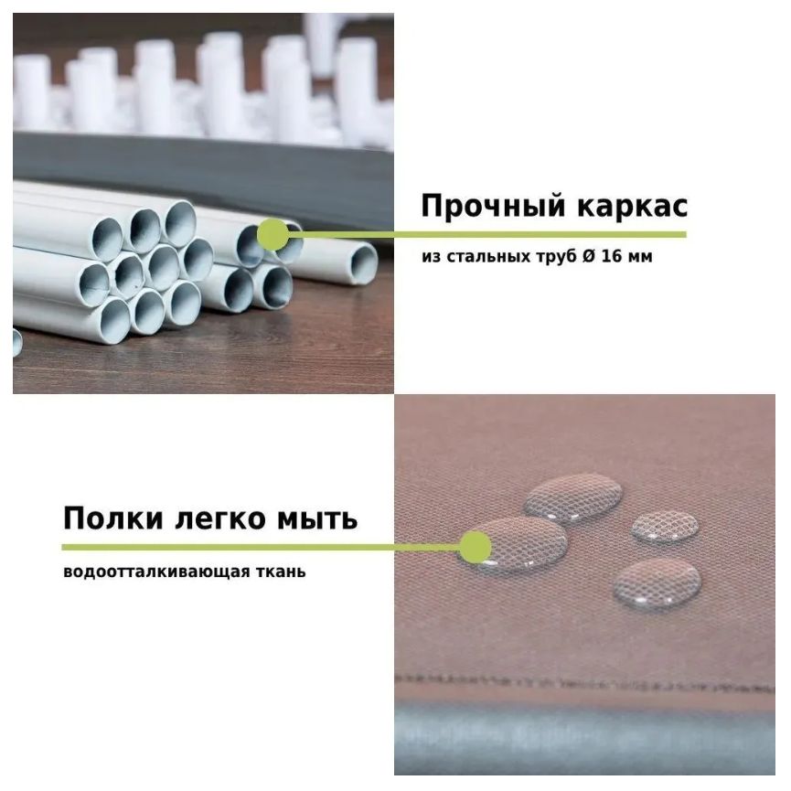 Простая и легкая двойная напольная вешалка с крючками позволит хранить все необходимые вещи рядом. Вмещает в себя большое количество вещей, позволяя грамотно вписать ее в любое пространство. Боковые вращающиеся крючки можно использовать для хранения сумок, шапок, а также мелких аксессуаров. • Размеры в сборе: 107x36x173 см • Материал: стальная труба Ø 16 мм (толщина 0,2 мм), полипропилен, нетканый материал с водоотталкивающим покрытием. • Цвет трубы: белый • Цвет ткани: серый • Количество полок: 6 • Максимальная нагрузка: 40 кг • Вес нетто: 2,35 кг • Размер индивидуальной коробки: 55x8,5x34 см • Вес брутто: 2,65 кг