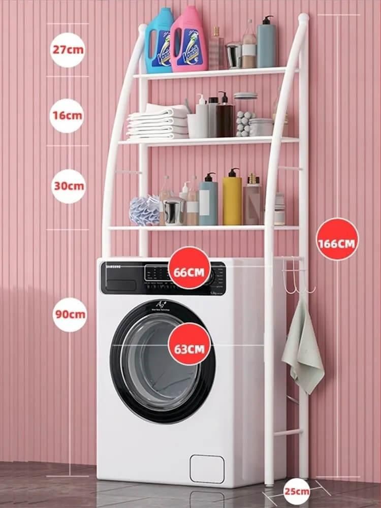 3-х уровневая полка для стиральной машины TM-0093 Приобретите отличную 3-х уровневую полку для хранения стиральной машины и сэкономьте место в своей ванной комнате. Благодаря качественному металлическому каркасу и его компонентам стеллаж прочный и устойчивый.Воспользуйтесь свободным пространством над стиральной машиной или другой бытовой техникой и разместите вокруг себя шампуни, моющие средства, дезинфицирующие средства и все, что вам нужно, чтобы сэкономить место. Лучший способ эффективно организовать вашу ванную комнату. высота 165 см ширина 65 см Нагрузка на 1 полку не более 10кг.
