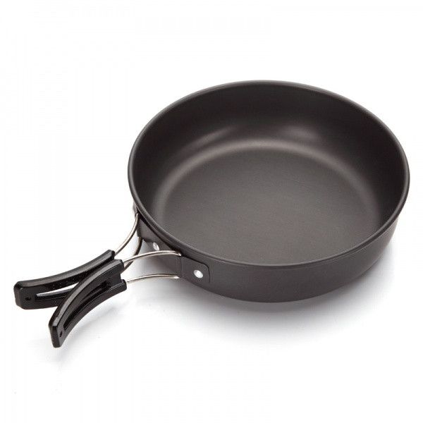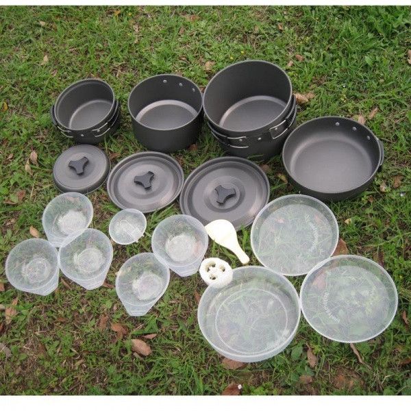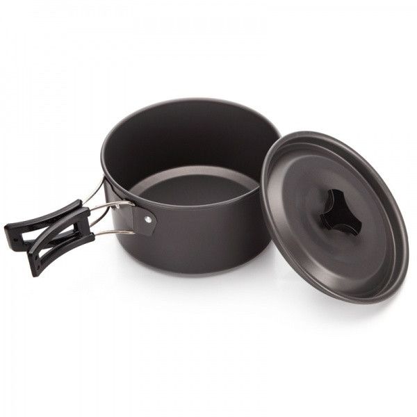 Отлично подходит для туризма, кемпинга, рыбалки и альпинизма. Имеет откидные переносные ручки с термоизолирующим покрытием, которые экономят объем при транспортировке, делая использование посуды более комфортным. Изготовлен из высококачественного алюминия с анодированным покрытием, обеспечивающим надежную защиту от коррозии и царапин, а также предотвращающим окисление алюминия, не допуская его попадания в организм человека. Набор туристической посуды Cooking Set 500 - это комплект посуды включающий в себя: • Большая кастрюля - 195x155 мм • Средняя кастрюля - 190x122 мм • Маленькая кастрюля - 166x89 мм • Сковорода - 136x68 мм • 5 пластиковых мисок (пиалы) • 3 пластиковых тарелок • Складной половник • Губка для мытья посуды • Чехол для хранения и переноски Особенности: - Комфортная эксплуатация в дальних путешествиях - Легко моется малым количеством воды - Складные рукоятки для компактной переноски и хранения - Компактная система хранения - Удобный тканевый чехол для переноски