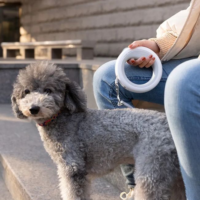 Полный контроль над собакой Инновационная модель поводка, который позволяет контролировать движение животного во время прогулки. Руки при этом остаются свободными. Уникальная форма ручки контролирует силу тяги. Двухслойная ткань из упругого каучука и полипропилена позволяет выдерживать статическую нагрузку до 90 кг. Повышенный комфорт Длина поводка составляет 3 метра. Это позволит животному наслаждаться свободой действий. Специальный индикатор синего света дает возможность прохожим и водителям заметить вас. Встроенный фонарик поможет осветить путь до 3 метров. Гарантированное качество Поводок выполнен из высококачественных материалов. Ручка изготовлена из прочного АБС пластика и поликарбоната, а нить из нейлона. Особая форма выхода поводка предотвращает его скручивание, обеспечивает комфортную прогулку домашнего питомца. Длина: 300 см Для Собак: Весом до 30 кг Аккумулятор: 210 мАч Порт зарядки: USB Type-C Габариты: 138 × 30 мм Вес: 200 грамм