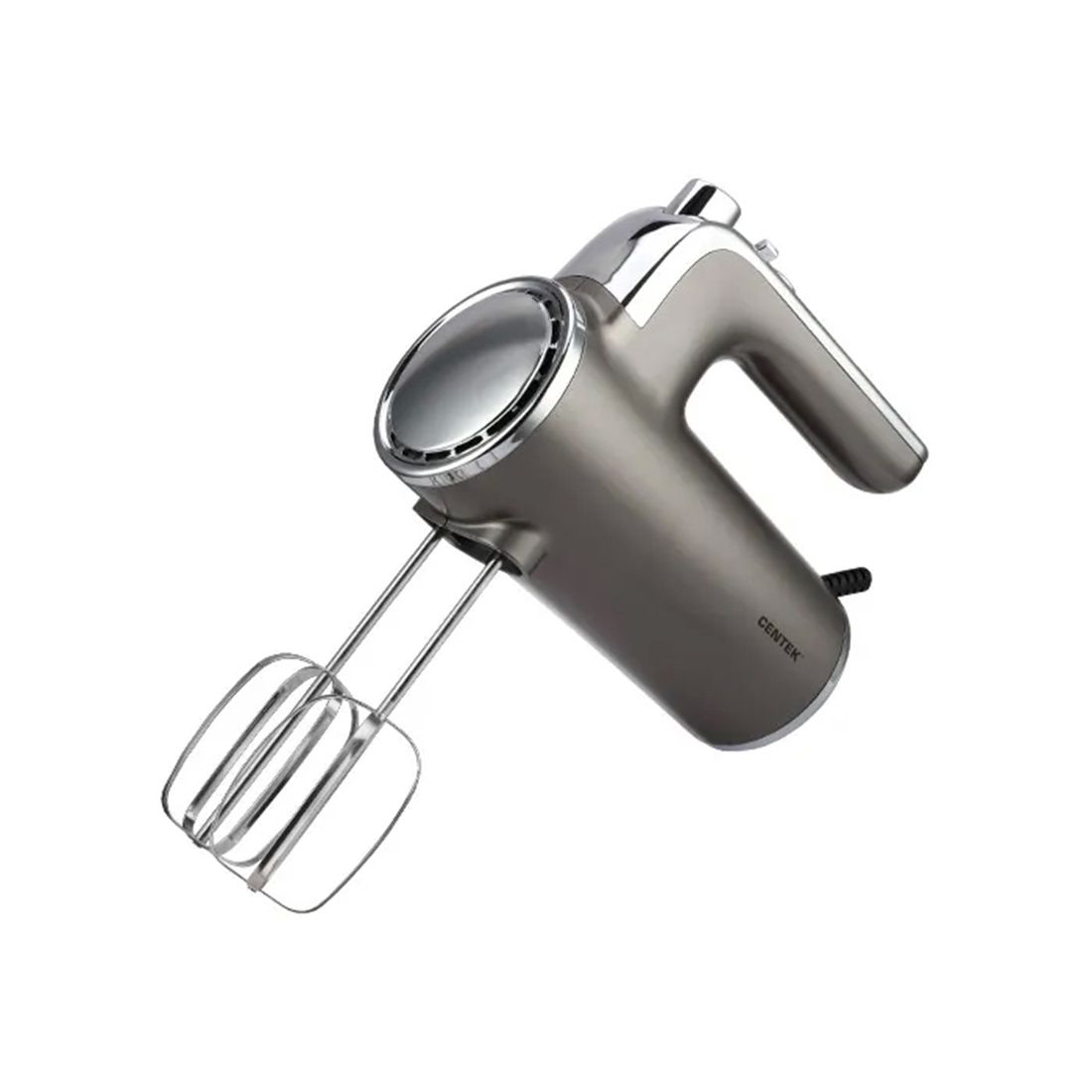 Миксер Centek CT-1126 О товаре Миксер Centek CT-1126 – производительная и тихая ручная модель мощностью 800 Вт. Прибор имеет 5 скоростей работы и турборежим, быстро и равномерно смешивает и взбивает различные ингредиенты. Турборежим служит для ускорения получения нужного результата. Плавный старт миксера убережет от разбрызгивания жидкого теста. Стильный корпус с хромированной отделкой устойчив даже к высоким нагрузкам и механическим воздействиям. В комплект к миксеру входят 2 венчика для взбивания, замешивания жидкого теста и 2 крюка для замешивания густого теста, фарша. Заменить насадки можно посредством нажатия на кнопку. Нескользящую ручку эргономичной формы удобно держать в руке, что обеспечивает комфортное использование прибора. Основные характеристики Тип - Ручной Мощность - 800W Кол-во скоростей - 5 Режимы - Турбо Длина кабеля - 125 см Особенности Кнопка отсоединения насадок Комплект аксессуаров Крюки для замешивания теста Насадки для взбивания