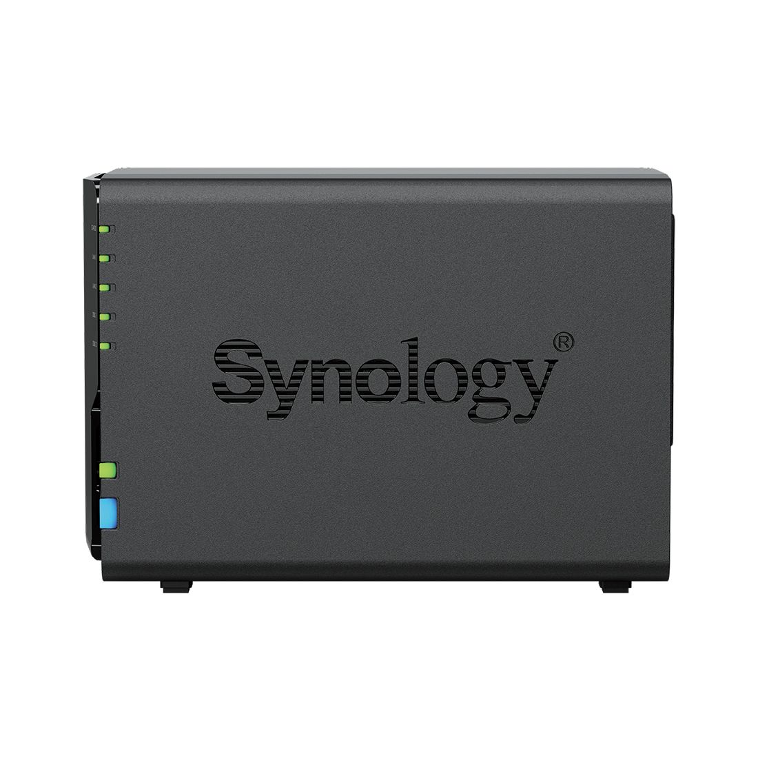 Система хранения данных (сервер) Synology DS225+ Процессор и память Процессор: Intel Celeron J4125 (4 ядра / 4 потока) Базовая частота: 2.0 GHz, Турбочастота: до 2.7 GHz Оперативная память: 2 GB DDR4 (non‑ECC) Расширение памяти: до 6 GB (через слот SO-DIMM DDR4) Накопители Количество отсеков: 2 × 3.5″ или 2.5″ SATA HDD/SSD Горячая замена дисков: поддерживается Максимальная ёмкость: до 40 ТБ (2 × 20 ТБ) Поддержка RAID: Basic, JBOD, RAID 0, RAID 1 Слоты M.2: отсутствуют Сетевые интерфейсы и разъёмы Сетевые порты: 1 × 2.5GbE RJ‑45 1 × 1GbE RJ‑45 Поддержка агрегации каналов и отказоустойчивости USB порты: 2 × USB 3.2 Gen 1 Type-A Порт расширения: 1 × USB‑C (для модуля DX517 или DX525) PCIe-слот: отсутствует Охлаждение и питание Вентилятор: 1 × 80 мм Охлаждение: активное, с регулируемой скоростью Уровень шума: примерно 18.7 дБ(A) Питание: внешний адаптер 65 Вт Потребление: Работа: около 26 Вт Ожидание: около 14 Вт Габариты и вес Размеры: 108 × 165 × 232 мм (Ш×В×Г) Вес: приблизительно 1.3 кг (без установленных дисков)