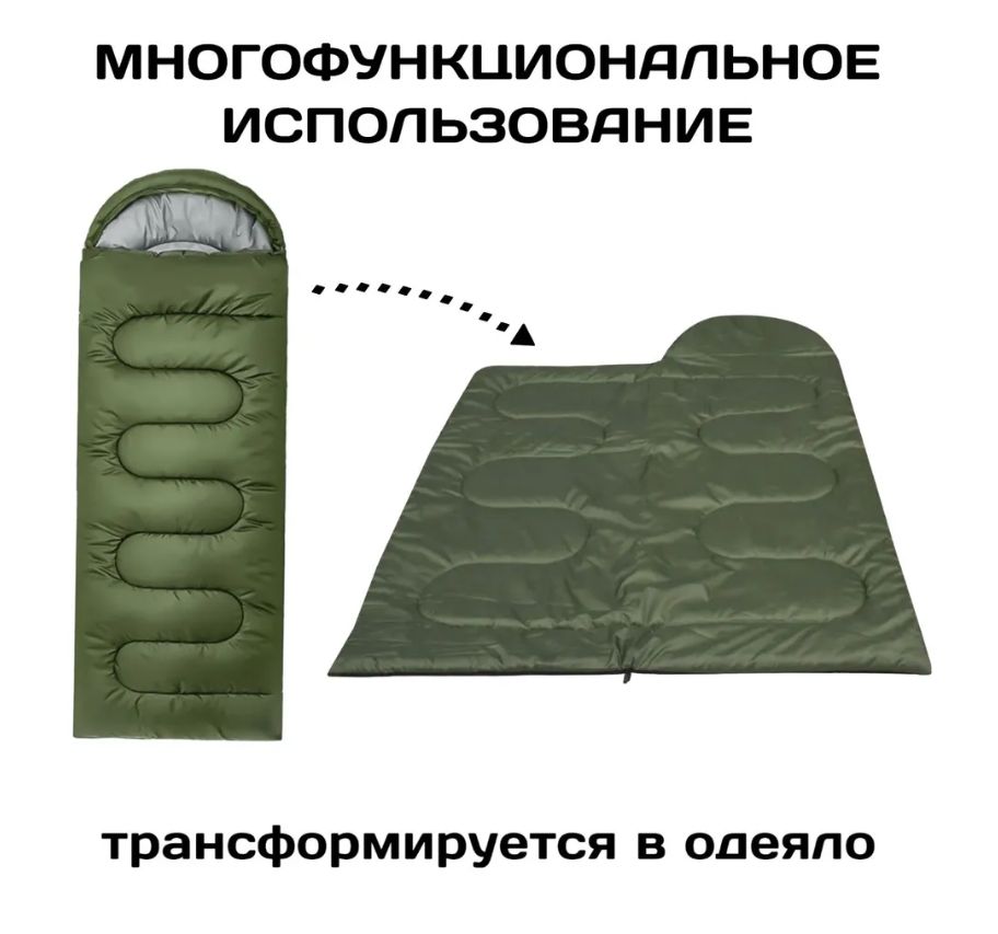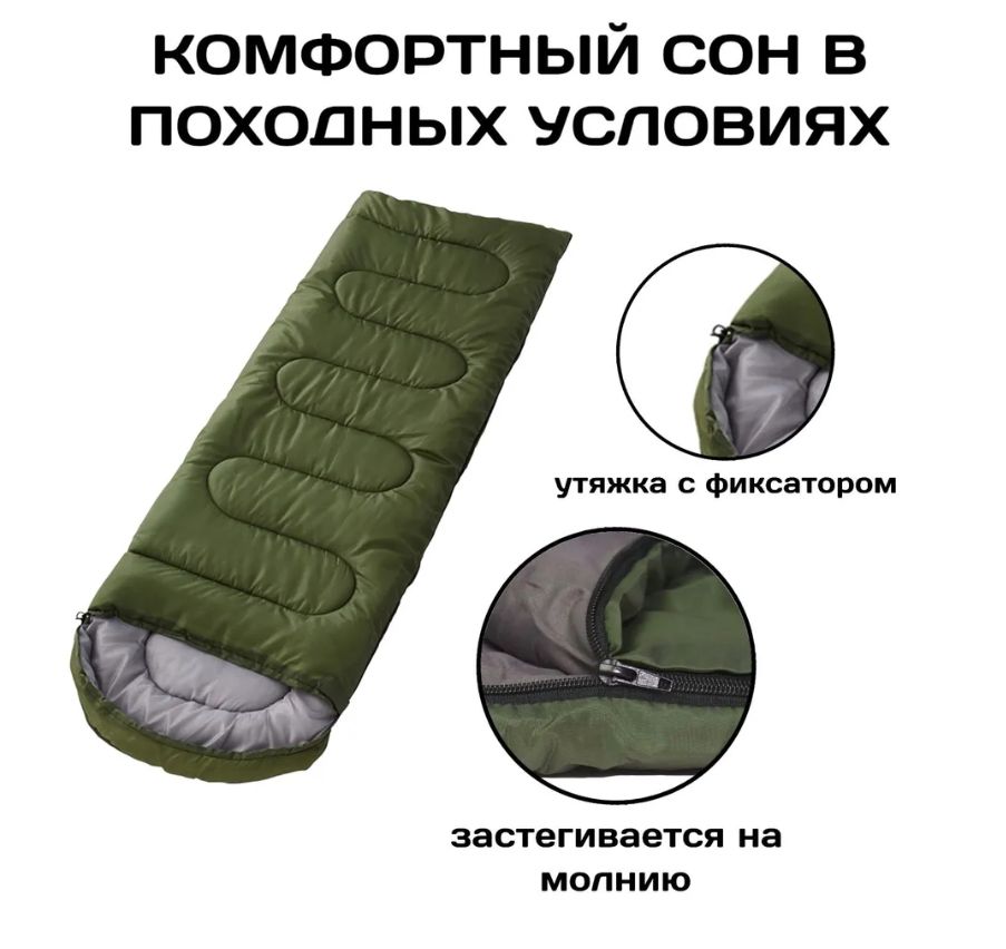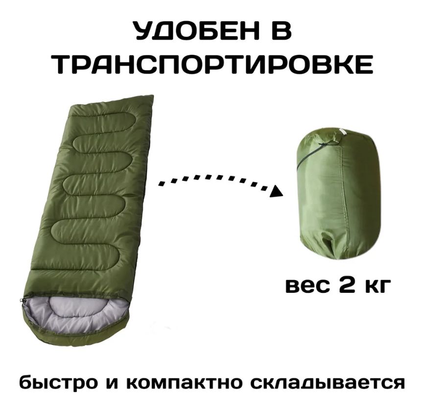 Спальный мешок туристический армейский для взрослых 220х75 см зеленый, для рыбалки и походов, мешок одеяло спальник для туризма - незаменимая вещь для любителей комфорта во время активного отдыха. Изделие изготовлено из материала полиэстер таффета, который отталкивает влагу. Спальный мешок расстегивается и может использоваться как одеяло. Спальник туристический имеет довольно лёгкий вес, что очень удобно для транспортировки во время путешествий - он поместится в рюкзаке и не займёт много места в автомобиле. Спальник застёгивается на одностороннюю молнию. Основные характеристики: Температура комфорта до -30 градусов Длинна 220 см (190 см мешок + 30 см подголовник) может быть небольшая погрешность. Ширина: 85 см (в расстегнутом состоянии 170 - как одеяло) может быть небольшая погрешность. Утеплитель: искусственный (синтепон 200 г/м2) , с внутренней прошивкой пакетов для исключения миграции материала утеплителя. Вес: 2 кг Транспортный чехол с ручкой и стяжкой