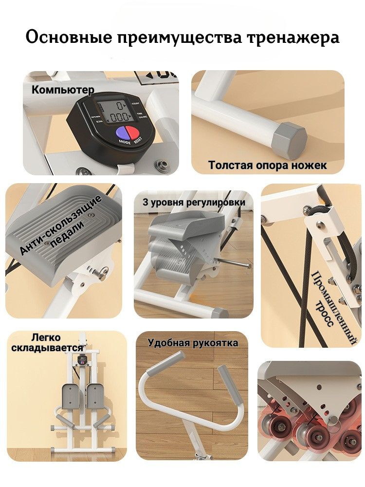 Степпер “Climber” ART.FiT WH-PLJ327a — ваш компактный тренажёр для эффективных домашних тренировок! Поднимайте выносливость, сжигайте калории и укрепляйте мышцы ног и ягодиц, не выходя из дома. Лестничный степпер ART.FiT WH-PLJ327a сочетает компактность, удобство и надёжность — отличное решение для тех, кто хочет тренироваться регулярно, но без громоздких устройств. Преимущества модели: Максимальная нагрузка — 100 кг: прочная и устойчивая конструкция выдерживает интенсивные тренировки. 3 уровня нагрузки — выбирайте комфортный режим и увеличивайте интенсивность по мере прогресса. Независимый ход педалей — мышцы работают равномерно, движения более естественные и безопасные. Складная конструкция — легко хранить даже в небольшой квартире. Минимум настройки — максимум результата: тренажёр не требует подключения и сложных программ. Следите за временем тренировки с простым и понятным показателем. Почему стоит выбрать именно его? подходит для любого уровня подготовки; помогает эффективно сжигать калории и укреплять мышцы; лёгкий, компактный, удобный в использовании; идеален для дома и офиса.
