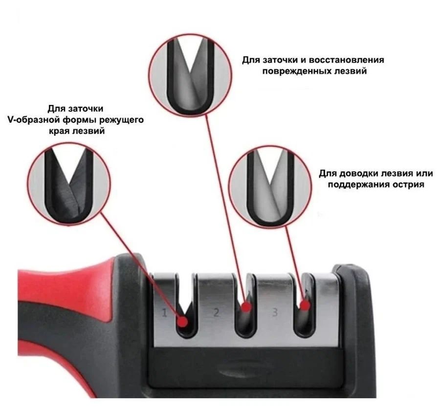 Ножеточка 3 зонная предназначена для заточки и доводки кухонных ножей. Состоит из трех зон заточки. Зона 1 – грубая заточка. Зона 2 – деликатная заточка. Зона 3 – доводка лезвия. Можно мыть в посудомоечной машине. Зона заточки отстегивается. Точилка для ножей проста и легка в использовании и не требует электричества.