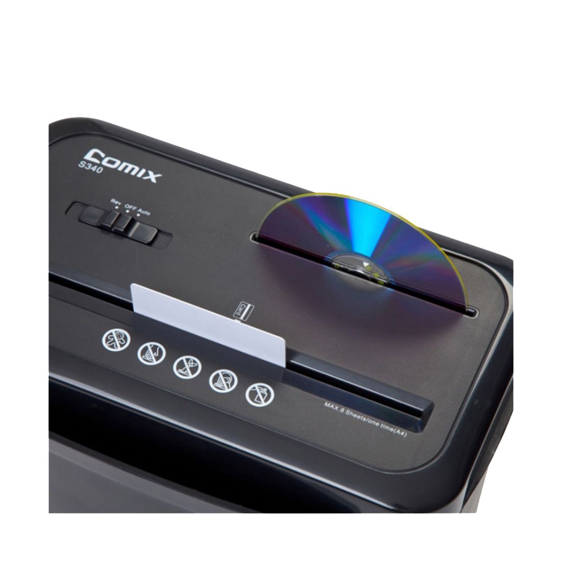 Уничтожитель бумаг (Шредер) COMIX S340 COMIX S340 это высококачественный шредер, который обеспечит надежную защиту вашей конфиденциальной информации. С его помощью вы сможете безопасно уничтожить документы, избегая риска утечки данных. Основные особенности COMIX S340: - Уровень секретности: 3 - Уничтожает пластиковые карты, компакт-диски - Вместимость: 8 листов (A4) - Емкость измельчения: 8 листов (A4), 1 компакт-диск, 1 пластиковая карта - Размер фрагмента резки: 4 45 мм - Ширина гнезда подачи: 220 мм - Тип измельчения: поперечный - Скорость измельчения: 34 мм/сек (2,2 м/мин) - Рабочий цикл: 2 минуты вкл., 40 минут выкл. - Ёмкость корзины: 13 л - Габариты (ШхГхВ): 310х190х331 мм - Вес нетто: 3,6 кг - Шум: 72 дБ - Элегантный дизайн, подходящий для различных условий использования - Отдельная конструкция корзины для компакт-дисков для разделения различных отходов